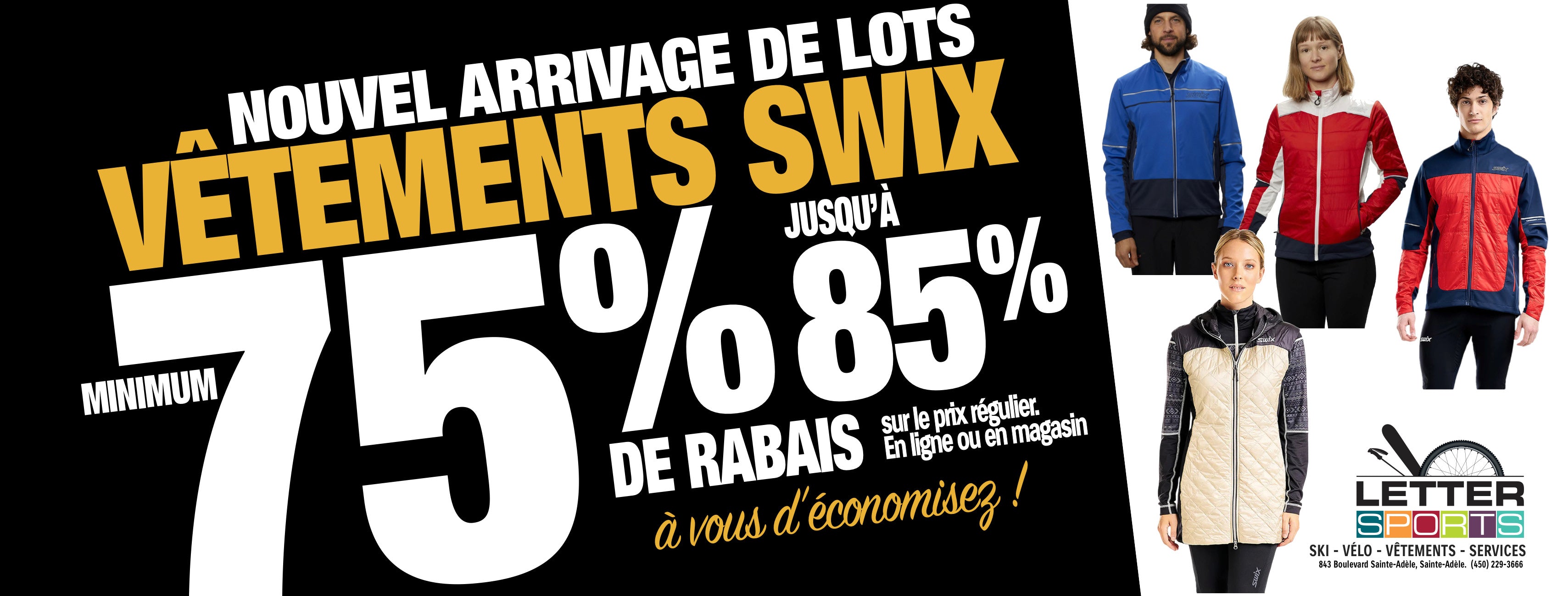 Sports Letter est votre boutique de ski et vélo depuis 2004. Situé à Sainte-Adèle dans les Laurentides, vous trouverez en magasin tout pour le vélo et le ski. Équipements, vêtements, accessoires et plus. Plus besoin d’aller loin pour de l’équipement de sport au meilleur prix.